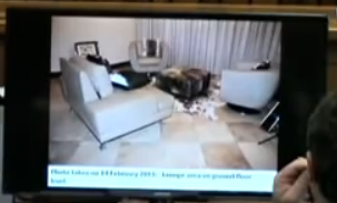 To illustrate how he believes the scene was disturbed, Roux shows some photos of Reeva’s overnight bag and the sandals in various positions, the duvet moved to a different position on the floor and the curtains closed while Van Rensburg was handling some the cords on the ground.