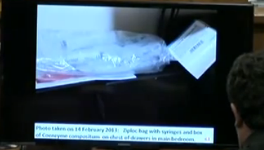 There was some very early speculation after February 14, that steroids may have been involved due to some items found at the scene. Those items were later determined to be herbal supplements called Coenzyme Compositum. In these images, you can see pouches of syringes and supplements found on top of the dresser in the bedroom.