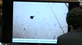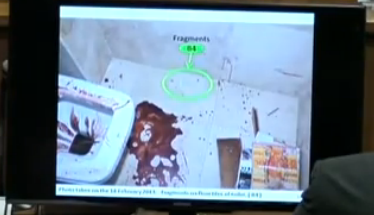 The bullets had fragmented and particles went through the body. Since the body of Reeva was dragged out of the toilet room, it is likely that some of these particles were dragged along with her. One particle had hair entangled in it.