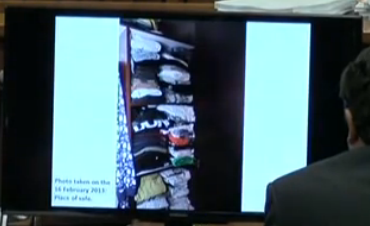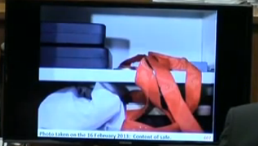 Regarding the safe that was mentioned in earlier testimony, it was located in one of the wardrobes in the upstairs hallway to the bathroom. Van Staden was present when Oscar’s brother Carl and lawyer Oldwage opened the safe. The items inside were taken out, photographed, and given to Oldwage. The safe contained a box of .38 Special ammunition, some other personal items and medals. There also was another safe downstairs in the kitchen. A locksmith was called out to help them open that safe and they did remove contents from there as well.