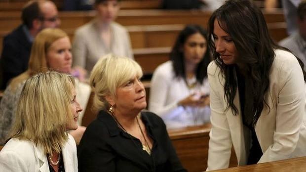 June Steenkamp returned to court this week. She has not been present since the first day of trial. Oscar greeted her as he entered court for the day and Aimee Pistorius, Oscar’s sister, also took the opportunity to say hello and presumably offer condolences.