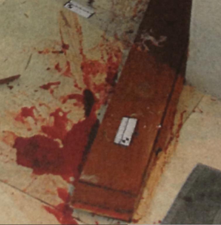 1. Amazing how first shot hit her where she was standing close to the door, and next 3shots perfectly aimed at where the magazine rack was. He had to have heard her fall against the magazine rack.