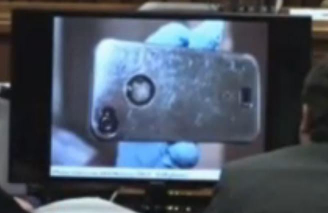 phone case of phone found under bathmat near gun