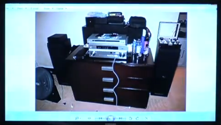 Nel zooms in on the floor now and points out the hair clipper next to the iPad. He wants to know if that is where Oscar left it. He is not sure if it was in the stand or not but he does plug it in to that extension cord (the white one) to charge, so he says it’s possible it was there.