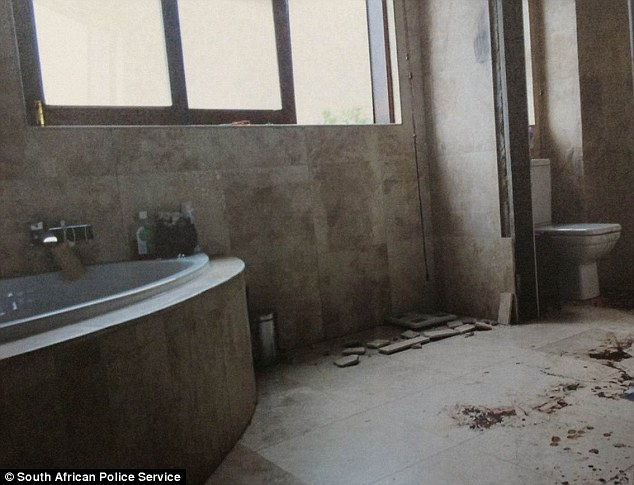 Roux informs Dixon that Mangena’s testimony was that Reeva was seated on top of the magazine rack when the 3rd and 4th shots hit her, and there was also a shot that missed her and ricocheted off the wall hitting her across the back causing the two marks. He wants to know what Dixon thinks about that.