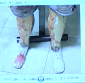 They next look at a picture of Oscar’s prosthetics as he was wearing them that night.