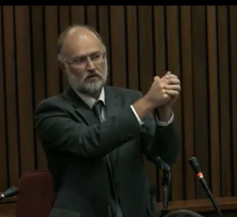 The next defense witness is Roger Dixon. He is qualified as a geologist. He worked in forensic science at SAPS from 1994 to 2012. He was previously the head of the department that Vermeulen (the State’s bat expert) worked in and Vermeulen is now the head. He has testified in court before although not often. He estimates about 3-4 times per year.