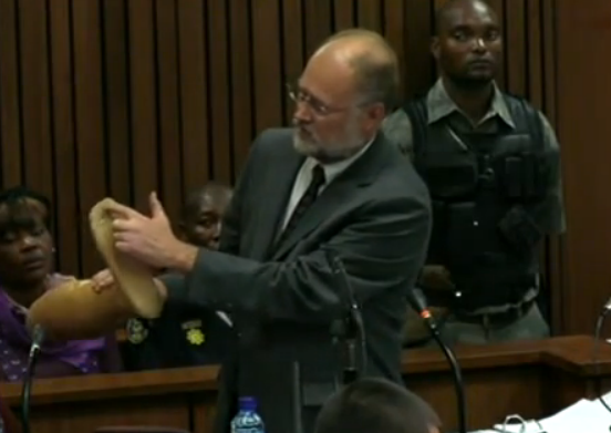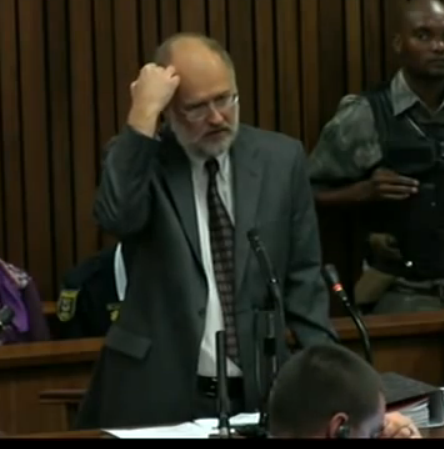 On November 8th, 2013, when a reconstruction of the scene was done at Oscar’s house, Dixon states that the following people were present: two SAPS policemen, Capt Van Aardt, Wolmarans, Ms. Adams, Mr. Pruger (spelling?) and himself. The two policemen installed the door. Wolmarans and Dixon took measurements and used the laser on the door. Wolmarans also used probes on the door. With the assistance of Ms. Adams, they tried to recreate the position for each wound utilizing the probes.