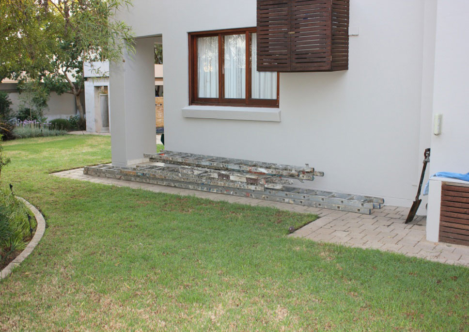If you look at the photo of the ladders at the side of the house you can see on the right margin the jeans and they are on a ledge. If you look at the other photo of the jeans they are on the ground with a dog in the picture. I had thought the jeans might have been the way the watch left the house. Put the watch in a pocket and float the jeans out the window … retrieve the watch later while in the back yard and leave the jeans … just a hypothetical … I wonder the order of the photos … were the jeans originally on the ground and someone placed them on the legs or vise versa. Dog may have pulled the jeans off the ledge.