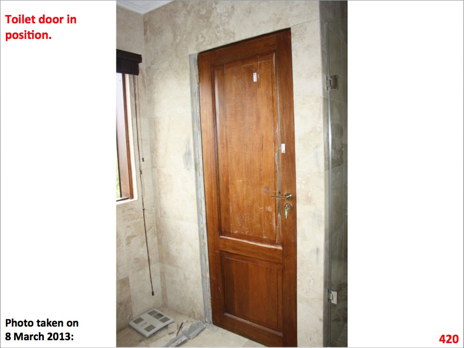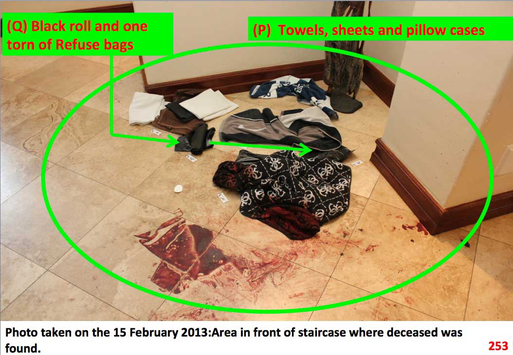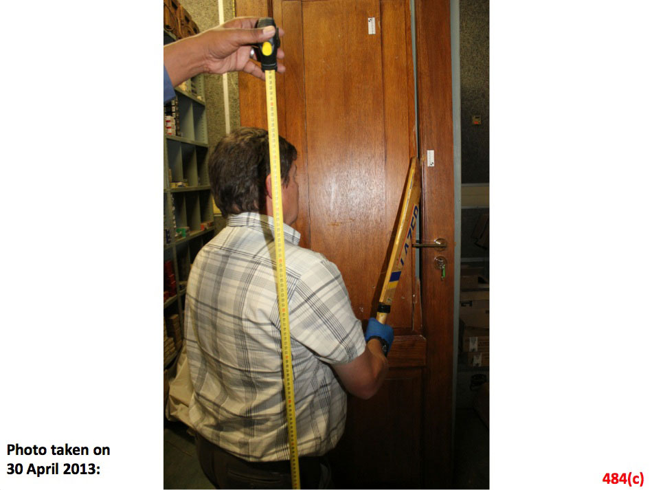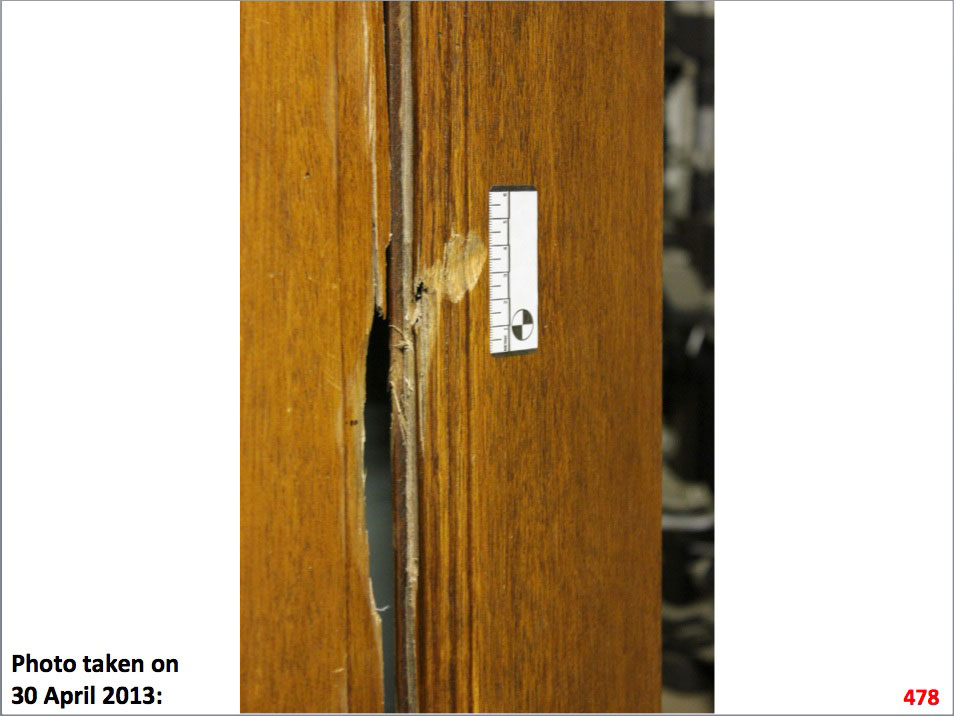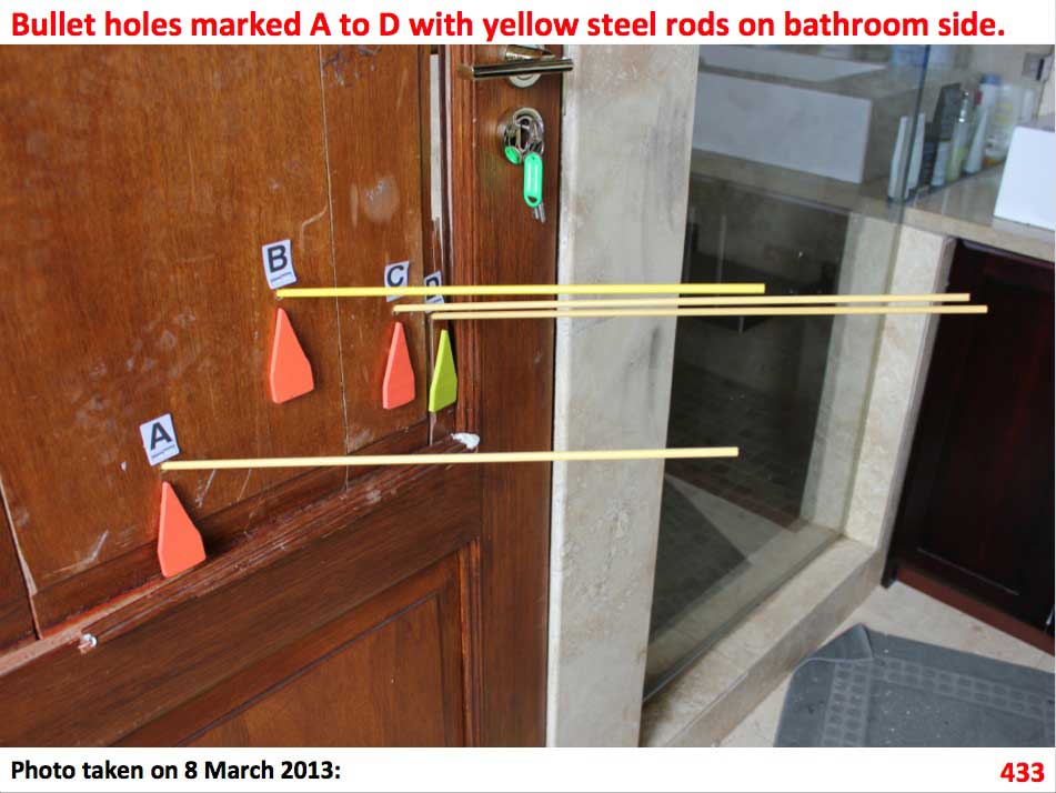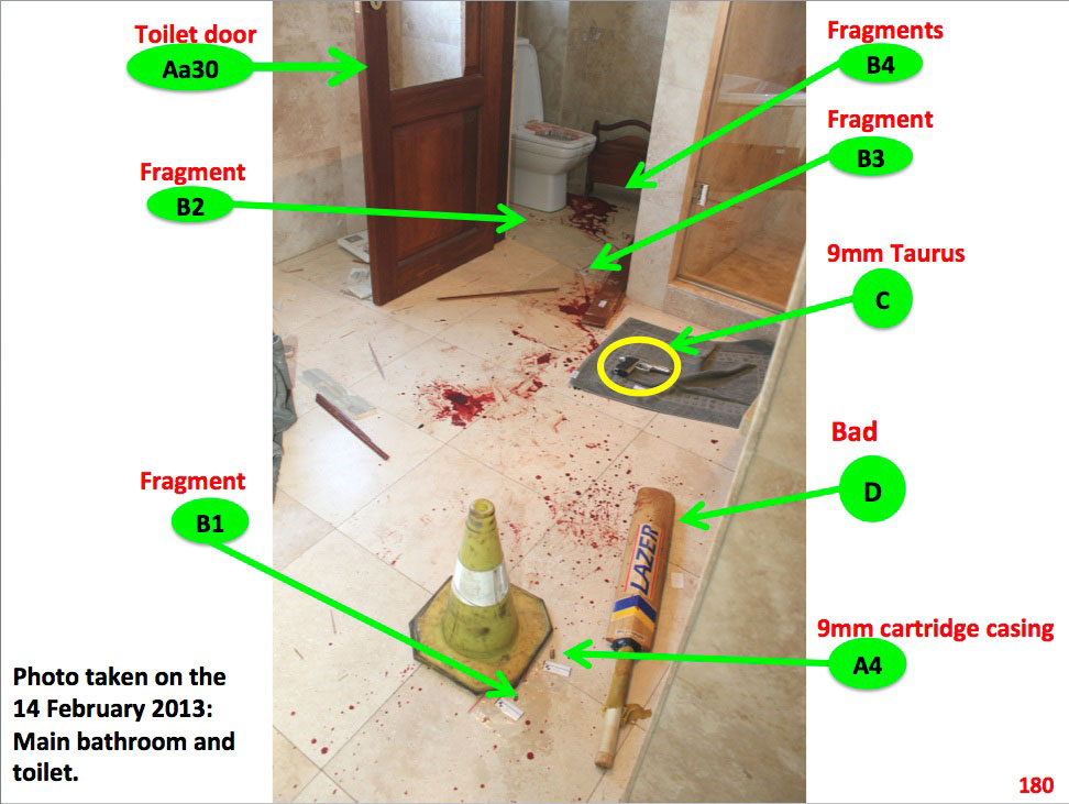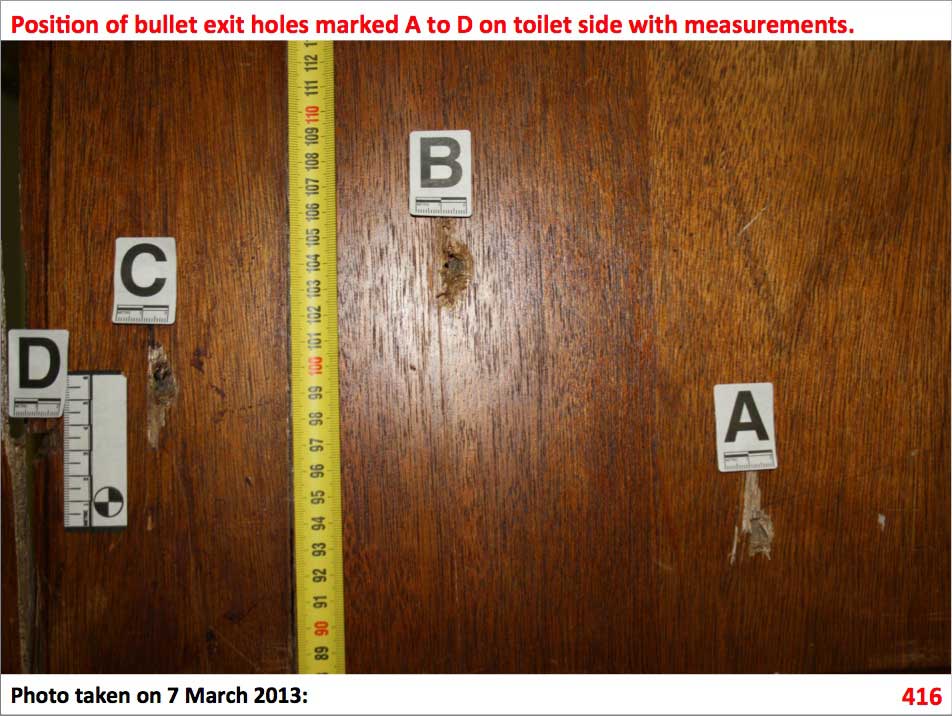 Great exhibit photos with explanations captioned…with all this evidence , it did not prove OP intended to kill Reeva.It did cast doubt about OP’s account but not enough to convict him of murder.