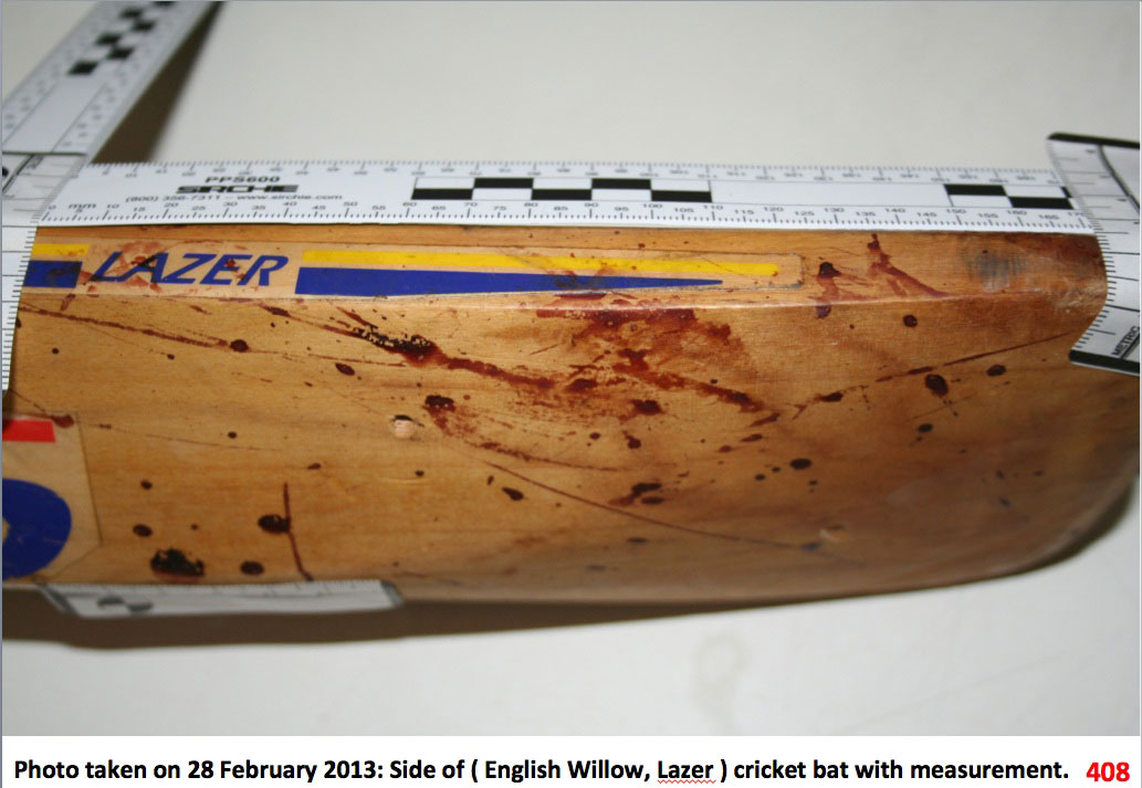 To me, it looks like the cricket bat caused that. I definitely believe there was a domestic struggle and there is plenty of circumstantial evidence to back it up. The house reeks of a fight… I don’t believe in that many coincidences.