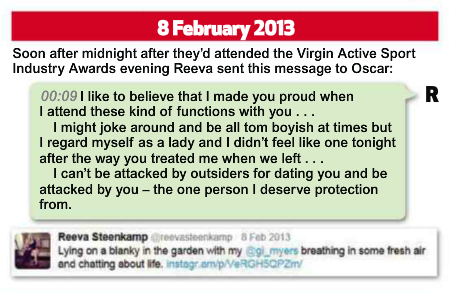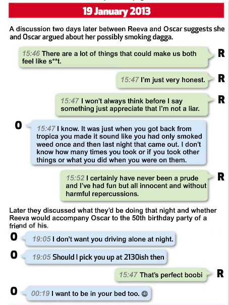 23 Jan 2013 Reeva to OP: That’s the worse thing that can happen here