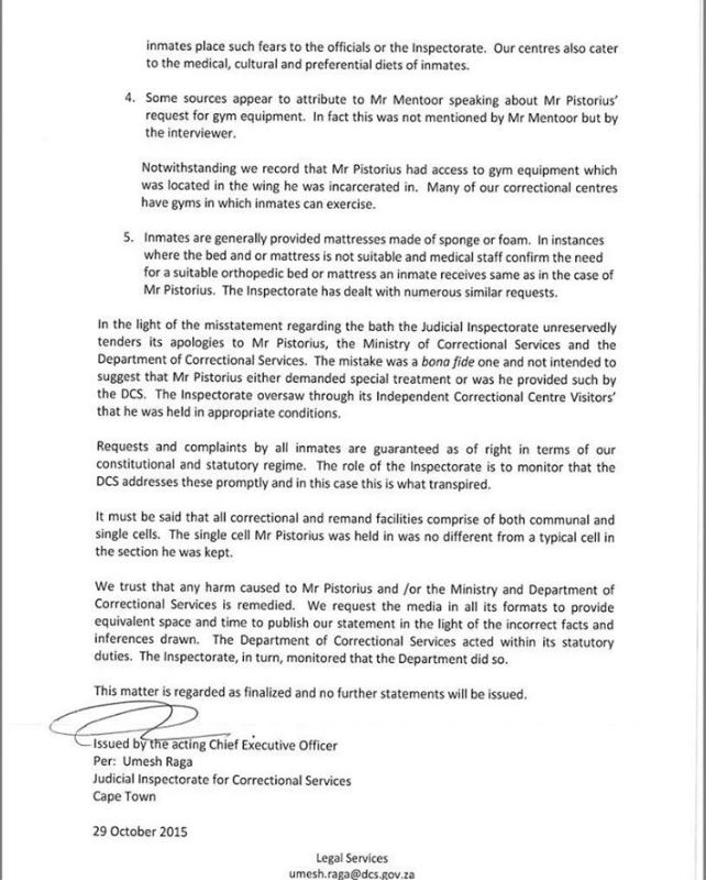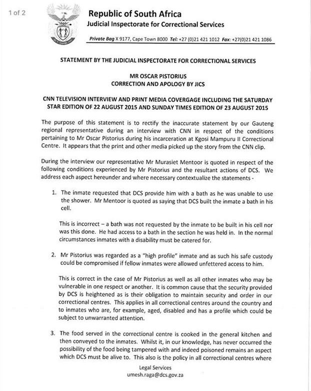 But, IMHO, the Pistorius thoughts about the “hype” being the reason is just another notch in the correctional services decision. I think it’s more a combination of many things you spoke about added to the mix of Pistorius’s sense of entitlement while being incarcerated (the PrimaDonnaSyndrome) and their right to do so. He is not in charge of his destiny at this moment, regardless of his family money, and underworld ties, or his sense of entitlement.